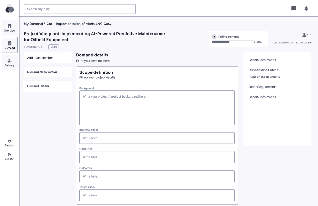 Redesign scope included project demand planning, cadence management, approval workflows, and executive reporting